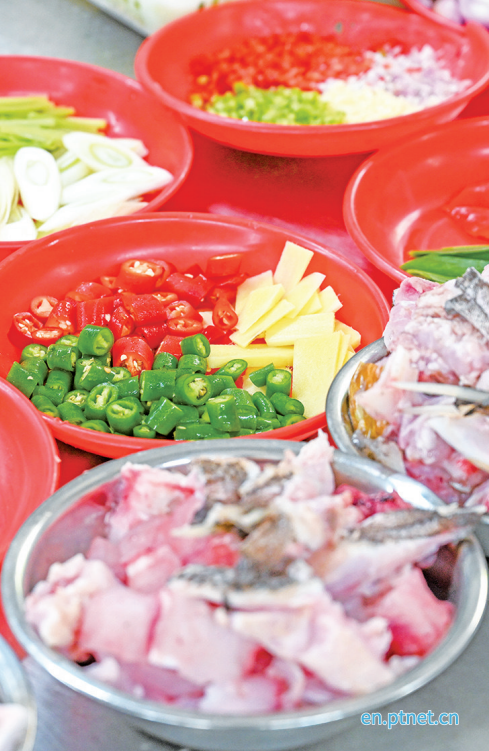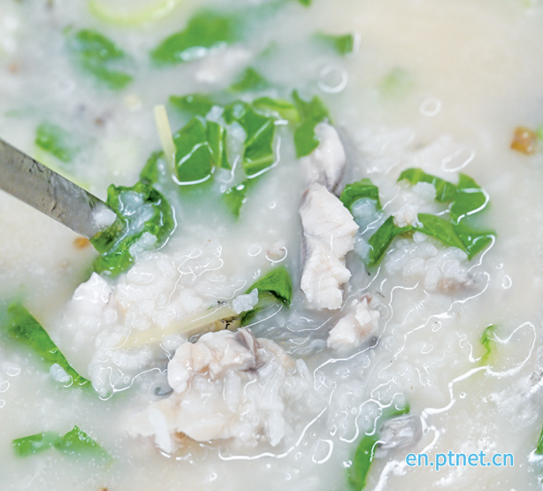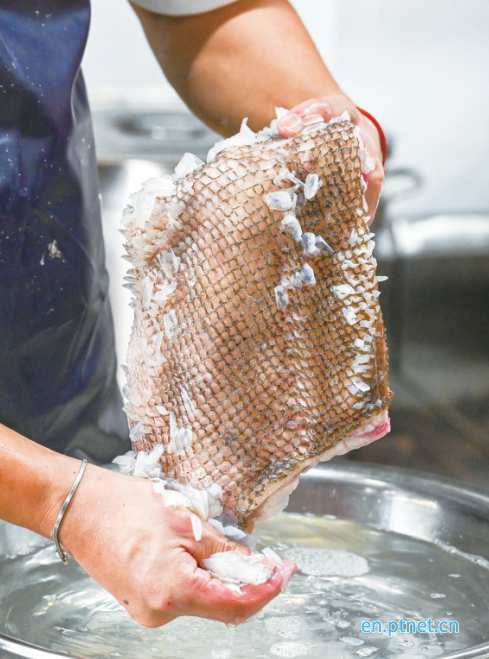 For many Pingtan locals, a bowl of fish skin congee is a beloved breakfast memory—and Shi's version turned the often-overlooked fish skin into a delicacy, staying true to the "no waste" principle. He used the skin left after filleting the fish belly, cleaning it thoroughly and cutting it into thin strips.