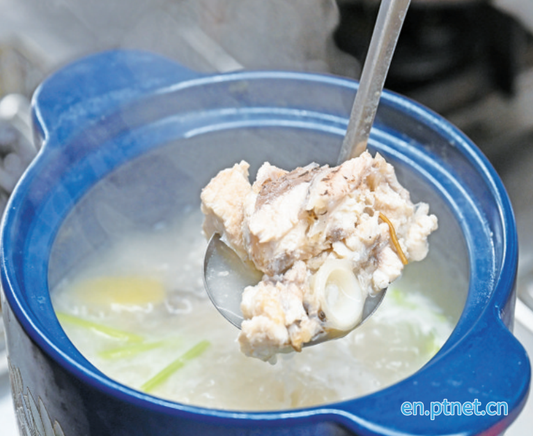To wrap up the feast on a warm note, Shi prepared a milky white fish bone soup—using the grouper's central bones, a part many might discard, but which he turned into a comforting, nourishing dish. "In Pingtan, eating fish is as common as eating rice," Shi said. "This soup isn't just food—it's a way to hold onto our feelings for home."