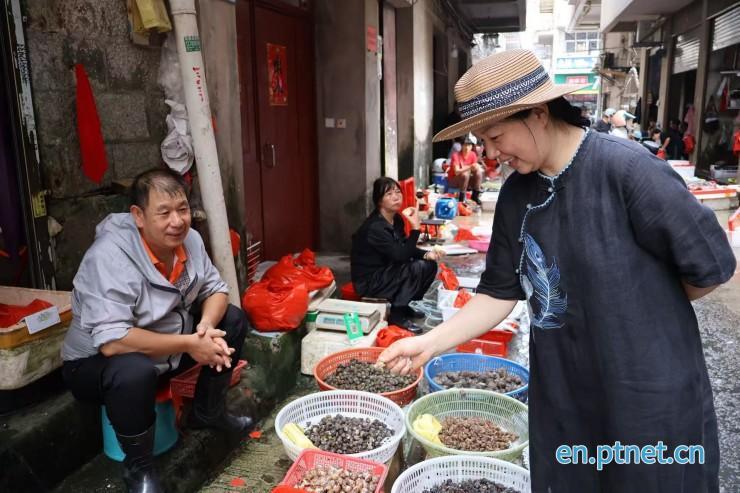 en.ptnet.cn | Updated:2025-09-28 | Lin Kongbo, StephanieQiu Se (rightmost) selecting "bijia" (goose barnacles) at the seafood market