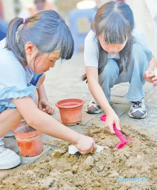 Adding a poetic touch to the celebrations is the "moon essence cutting" custom. Local lore says "moon essence"—the moon's core, shaped like silk, willow branches, or rice ears—drifts down to Earth when the "heaven's gate" opens on Mid-Autumn Night. Catching it, people believe, brings great prosperity. Folk culture promoter Chen Juanmei has been sharing this tradition with kids, leading activities: a "Returning Seeds to the Land" autumn sowing event and lacquer fan making. Known affectionately as "Aunt Goodness," she guided kids to plant hollyhocks, teaching them to identify various flowers and plants. "Loving nature starts with noticing every bloom, blade of grass, every tree," Chen said. She even linked the old moon essence custom to sowing: "Planting seeds with your own hands is a real, reliable way 'catch good fortune'—just like the ancient tradition of cutting moon essence." After planting, kids huddled in an old house courtyard to make lacquer fans, using plant-based natural pigments to paint favorite designs, crafting one-of-a-kind art.