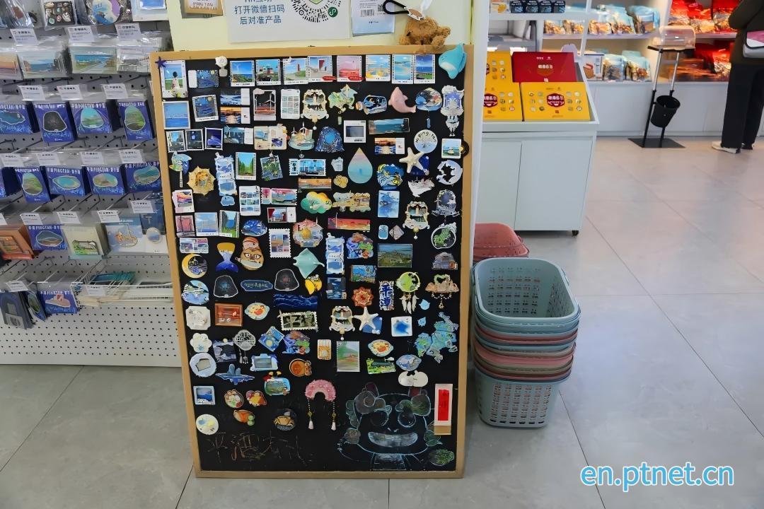 Li Yan, the store manager, reported a surge in customers on New Year's Eve, with holiday sales up nearly 30% year-on-year. Small souvenirs like fridge magnets and postcards were top sellers, but the "Blue Tears" themed section drew the most attention. Wang Yipeng from Henan and his friends lingered there, shaking luminous sand fridge magnets that mimic the blue glow of the natural "Blue Tears" phenomenon. "It's our first time seeing the sea, and we haven't encountered real blue tears yet," Wang smiled. "But my daughter said, 'Now we can take the blue tears home.' That's why we came straight here." His 8-year-old daughter carefully chose five magnets, excitedly showing them off: "I like this star-shaped one... and this glowing one!"