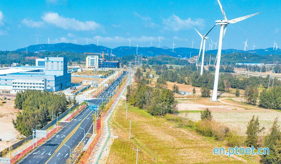 Under a clear blue sky, rows of windmills spin gently—symbolizing Pingtan's harmony between sustainable development and breathtaking natural beauty.