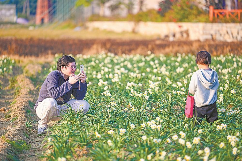 Pingtan, a coastal island in Fujian Province and an important native source of daffodils with unique cross-Straits advantages and international tourism island status, welcomes its daffodil sales season as Lichun (Start of Spring) arrives. These elegant flowers, known as the "Fairy on the Waves" for their pure white petals, green leaves and golden centers, have been a symbol of the island's culture for over 300 years and hold a national geographical indication certification since 2013.