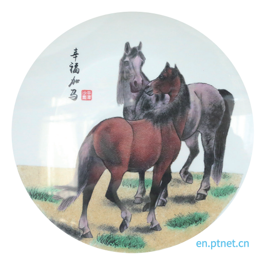 Lin Fuping, an inheritor of Pingtan Sand Painting, creates his works with natural colored sand sourced locally from Pingtan, which has six to seven natural hues without artificial dyeing. Working on dark round plates, he has produced two key works, May Success Stride Swiftly and Happiness Multiplied. Sand painting creation requires extreme patience: each layer of sand is fixed with special glue and left to dry completely before the next layer is added. "The flowing sense of a horse's mane and tail must be expressed by stacking sand grains of different thicknesses layer by layer," Lin explained. The round plate's curved surface creates a dynamic illusion, making the steed seem to gallop when viewed from different angles. His student Wei Nuoyan noted that May Success Stride Swiftly uses multi-colored sand to outline the horse's muscle texture and light and shadow, giving the work vivid vitality with strong island characteristics from the local materials. Happiness Multiplied depicts two steeds gazing at each other on golden sand "grassland", interpreting the happiness of company and peace. Lin embeds sand paintings on daily round plates, hoping the handcrafted works with auspicious meanings can accompany people in ordinary life.