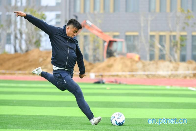 en.ptnet.cn | Updated:2026-03-31 | Lin Kongbo, StephaniePingtan, a coastal island in Fujian Province known for its distinctive maritime charm and thriving cultural and sports scene, has welcomed a passionate young football player from Xizang as part of its local team for the Fujian Football City League (FJCL). Dawa Zhaxi, a senior at Fujian Polytechnic of Information Technology—based in Pingtan—is set to graduate soon and return to Xizang for an internship. Currently training with the Pingtan FJCL team, he regards this opportunity as both a delightful surprise and a fitting finale to his college football journey.