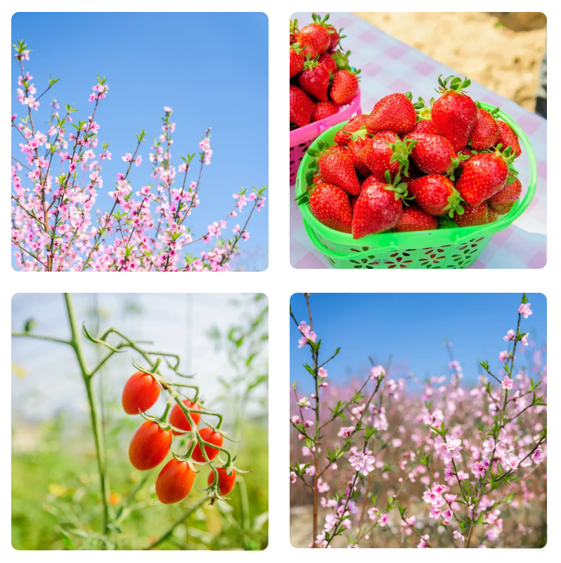 Red brings a sweet spring vibe, with peach blossoms in Wufeng Village and fresh strawberry and cherry tomato picking at local farms like Pingtan Xiaoxingxing Strawberry Picking Garden.