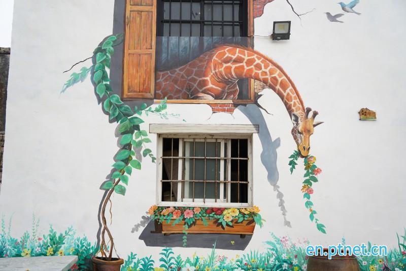 The wall painting has become a scenic spot in the village.