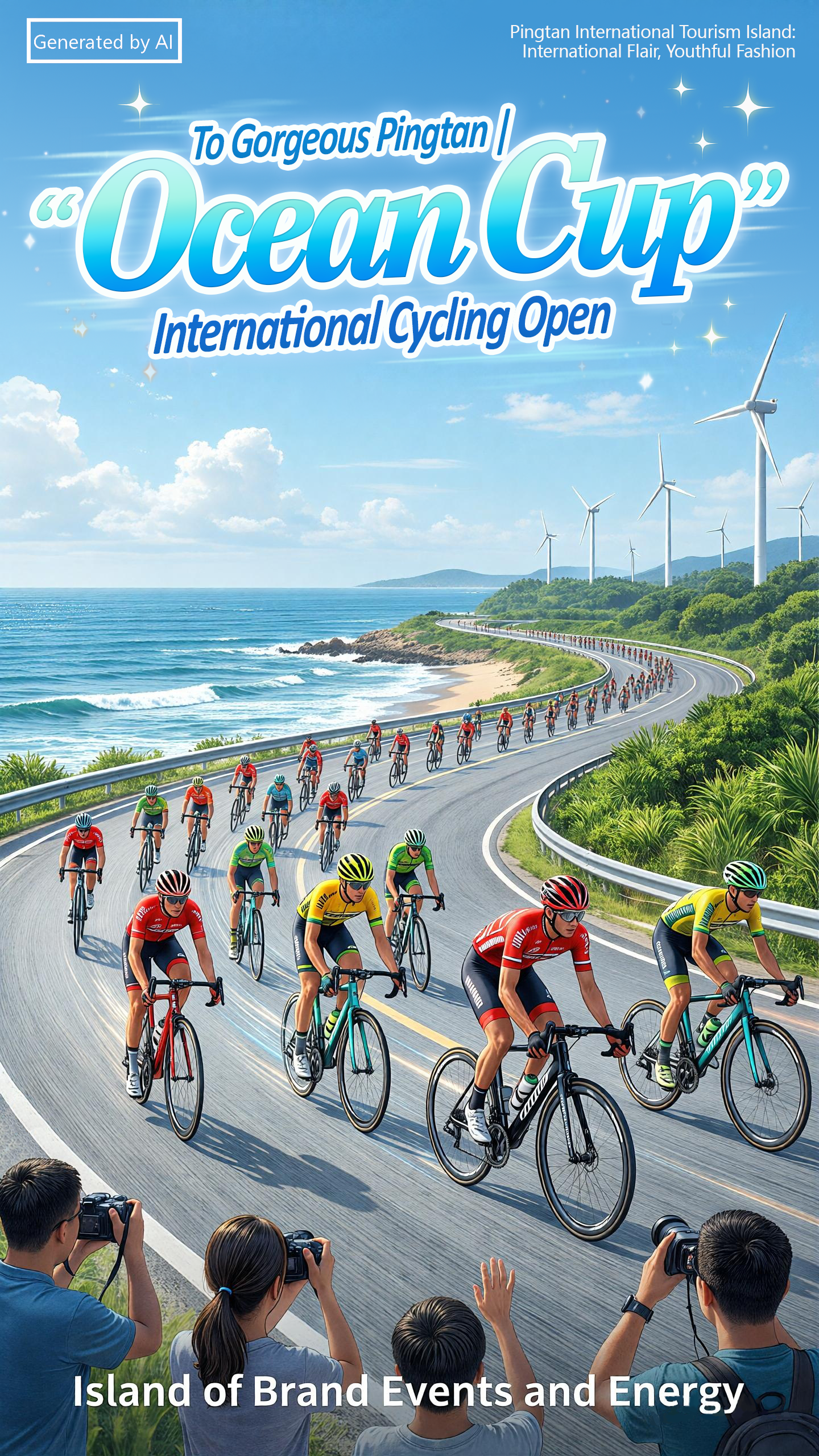 Sea breezes carry vitality, and the racecourse weaves through the magnificent scenery of mountains and seas. The "Ocean Cup" China (Pingtan) International Cycling Open perfectly blends cycling with island landscapes. Riders racealong, with the blue coast and white windmills behind, and fresh greenery and clear skiesbeside. Here lies the passion of elite competition, the joy of family rides, and the sincere vision of environmental protection through cycling. This "sports + cultural tourism" feast embodies Pingtan's unique vitality and romance, inviting you to embark on a cycling journey by the sea.