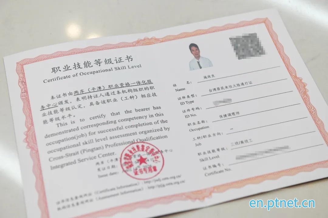 Clutching a newly issued red certificate, practitioner Shi Zhengliang described the moment as "long-awaited." The document, labeled "vocational skill level certificate," confirms his status as a senior-level health therapist on the Chinese mainland. It marks the first time that traditional massage practitioners from Taiwan have been granted a direct pathway to equivalent mainland certification.